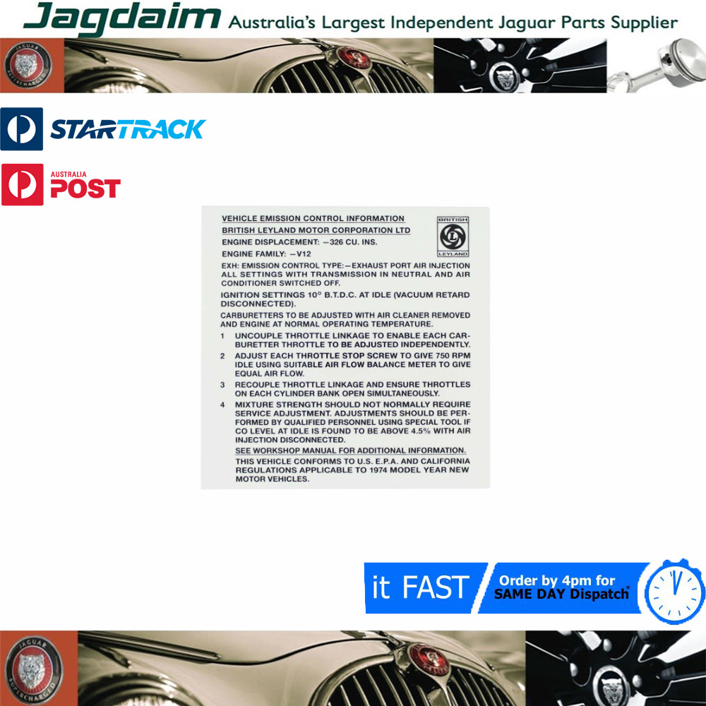 New Jaguar E Type 1973 Emissions Decal ID0010/73